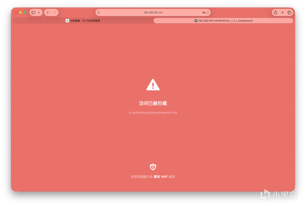 按照官方文檔,模擬了路徑穿越等多個攻擊,都能成功攔截掉。