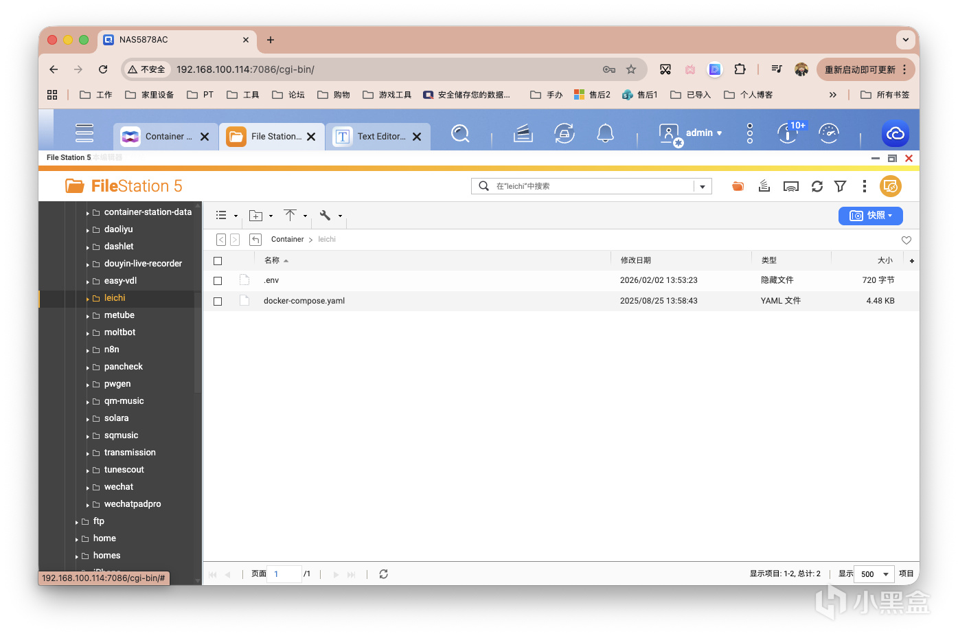 以威聯通NAS爲例,通過Docker Compose的方式進行部署。