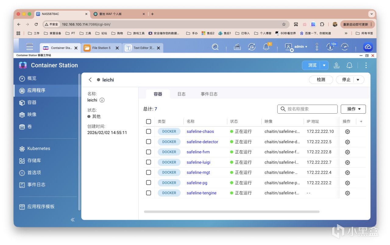 不過筆者作爲威聯通NAS用戶,對其它品牌較少關注~但是最近正好有朋友留言需要雷池WAF,咱們也順道乘個熱度,來一篇雷池 WAF-LTS版的本部署流程,套上一層WAF應對這類風險輕輕鬆鬆。