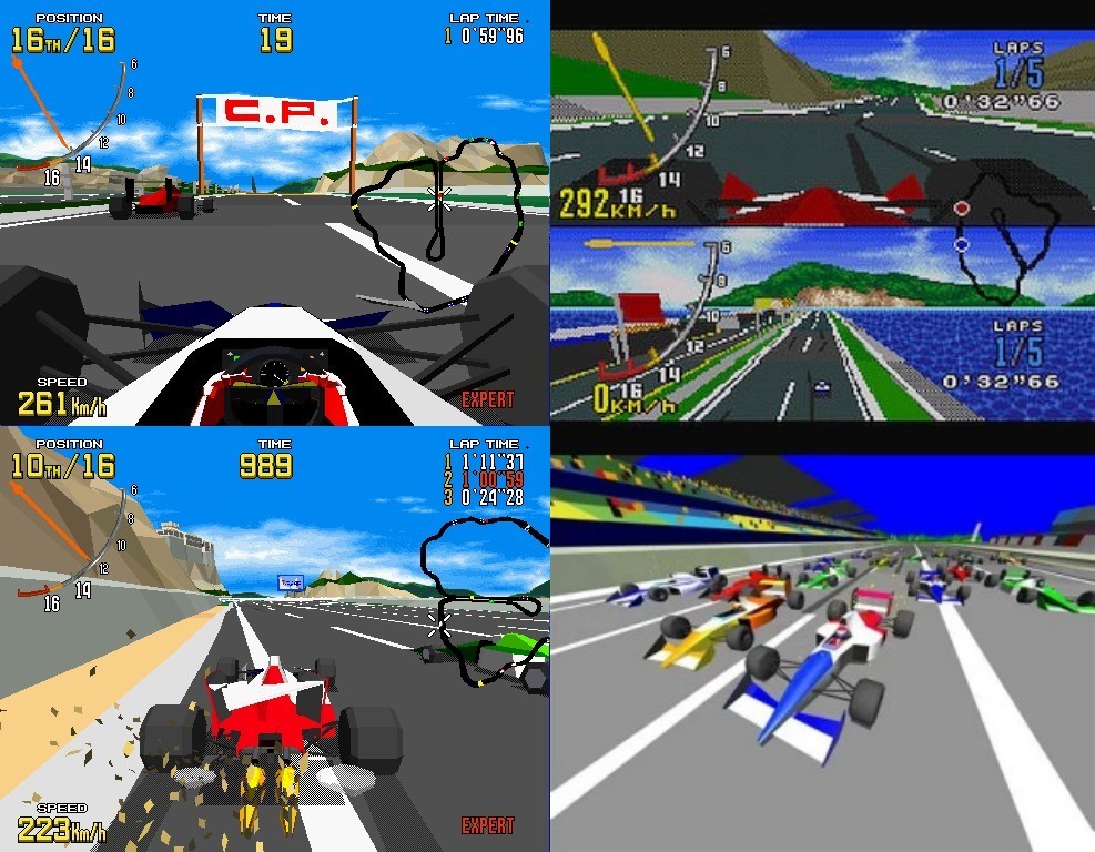 而且在16位機時代,我是孤陋寡聞,沒見過有能夠調整視角的賽車遊戲,其實是有的。(VR賽車不算)當第一次見到以全3d畫面展示多種視角及場景的賽車遊戲,還是把這個少年的眼球硬控住了……