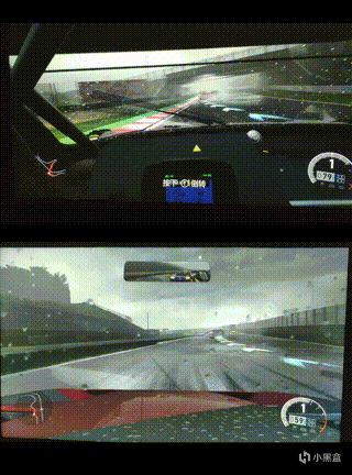 侄子在跑的某個賽道,遊戲裏的天氣突然變化了,開始小雨打在車前窗,隨着車子行進,雨珠也隨着運動被壓扁流向後方。