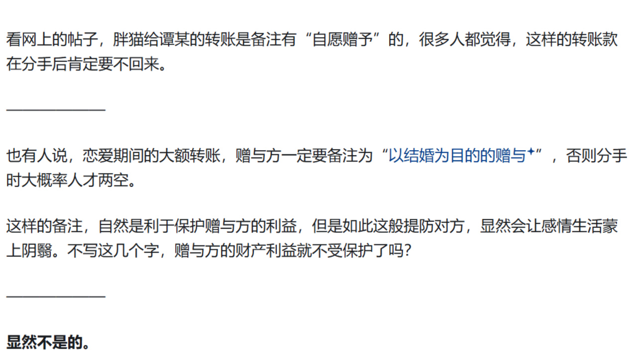 律师说,即使备注自愿赠与,大额转账也可以追回(不建议大伙亲自实验)