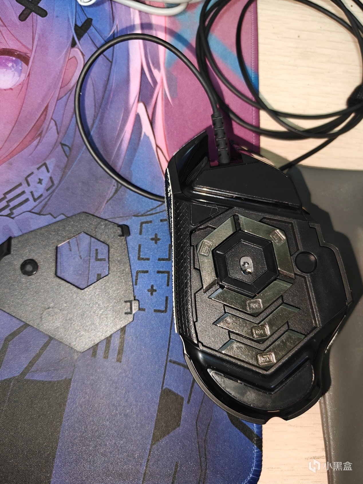 然后是关于配重块的问题。在装之前,我特地用了一下这款鼠标,蛮轻蛮快的,感觉比我之前惠普的鼠标还轻巧。但是装上配重块之后…这个鼠标明显沉太多了!我挪一下都得微微用力!更夸张的是,我朋友的卡莎联名,她说她用了3年,满载配重块…兄弟们,就算是为了自己,对别人一定要好一点,不然真容易被达斯啊!