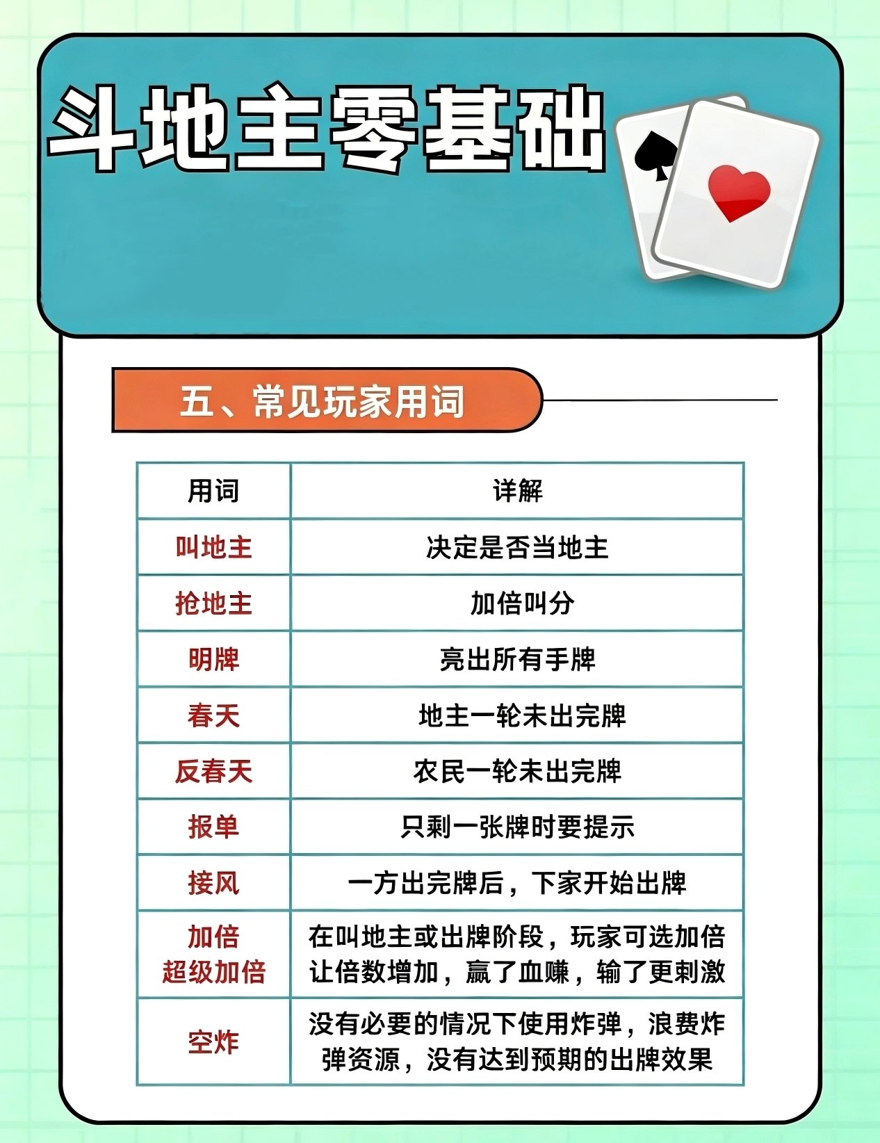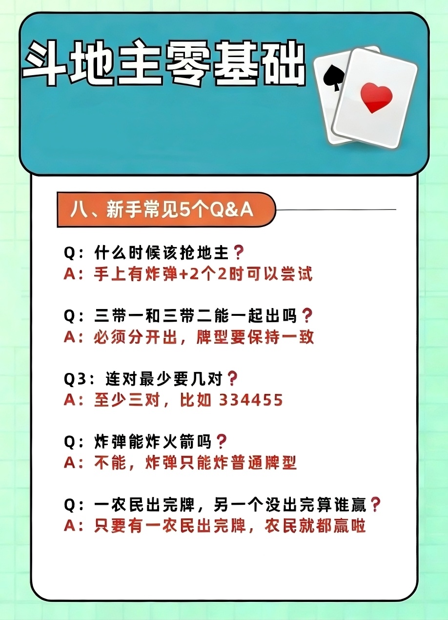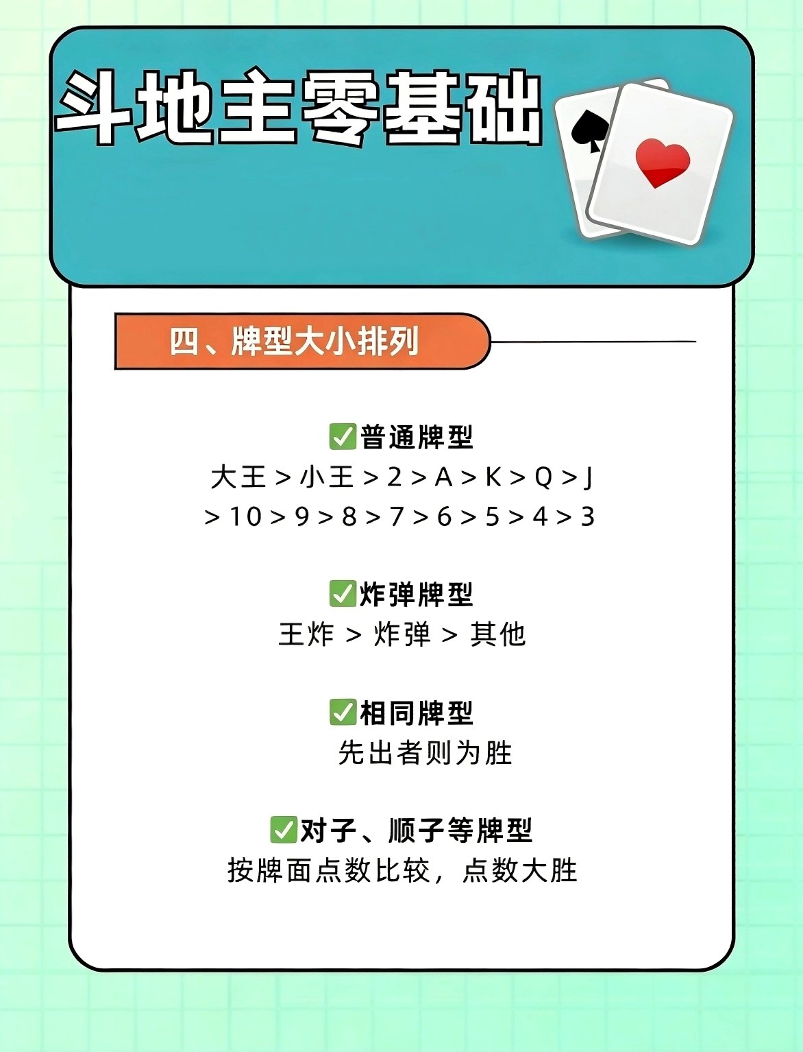 本篇零基础教学,搭配详细图解教程,从最基础的游戏人数、发牌规则、叫分机制讲起,清晰拆解单张、对子、顺子、炸弹、王炸等全部常用牌型,标注好大小对比与出牌规范,让你一眼看懂所有牌型用法。