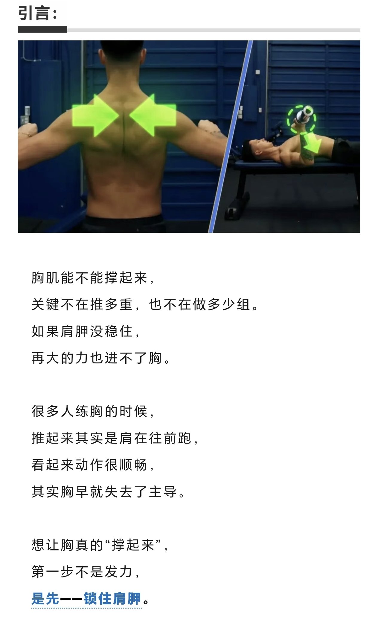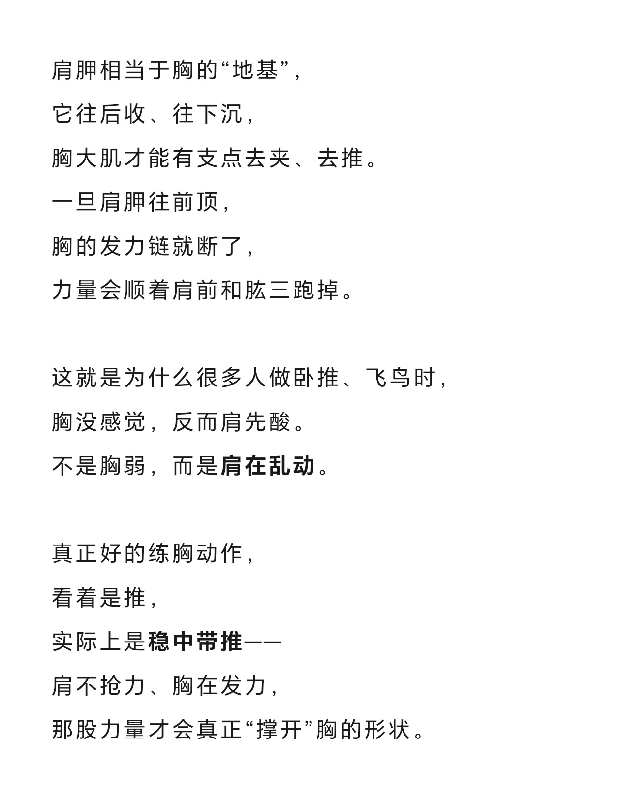 想让胸长出来,先别想着更重的杠,先把肩锁住,让力量有地方落。才是真正让胸变的饱满的开始。