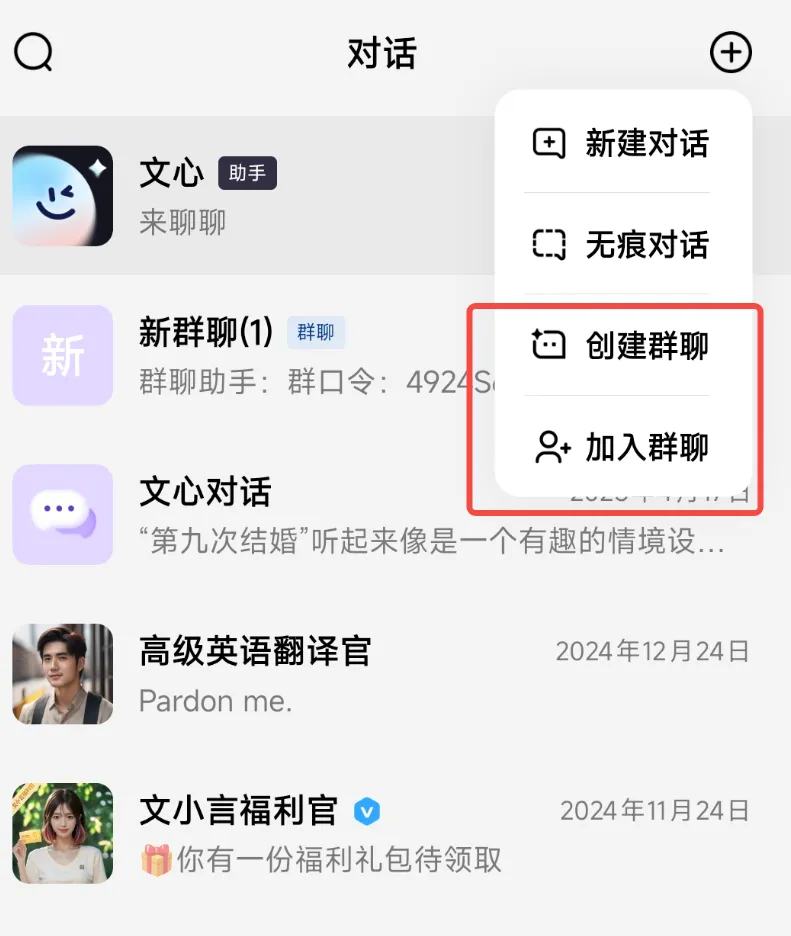 就在大夥兒輪着搶內測碼搶得不可開交的時候,殊不知百度文心那邊也有一個羣聊功能。
