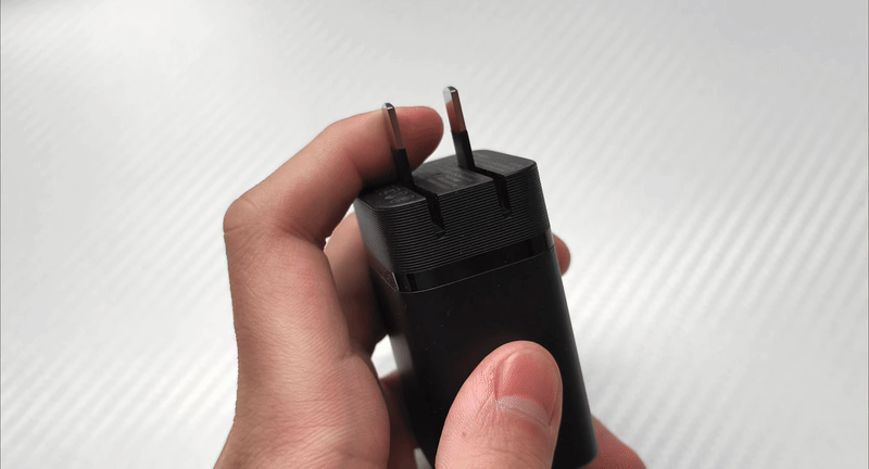 从这块充电器名字里沾一个MINI开始,我相信大家就已经明白了这是一款定位轻量化,适合日常携带的充电器。它的尺寸很小,仅有41×32×60mm,作为一款90W的快充头,整体的一个体积方面确实要比大部分市面上的款式要小很多
