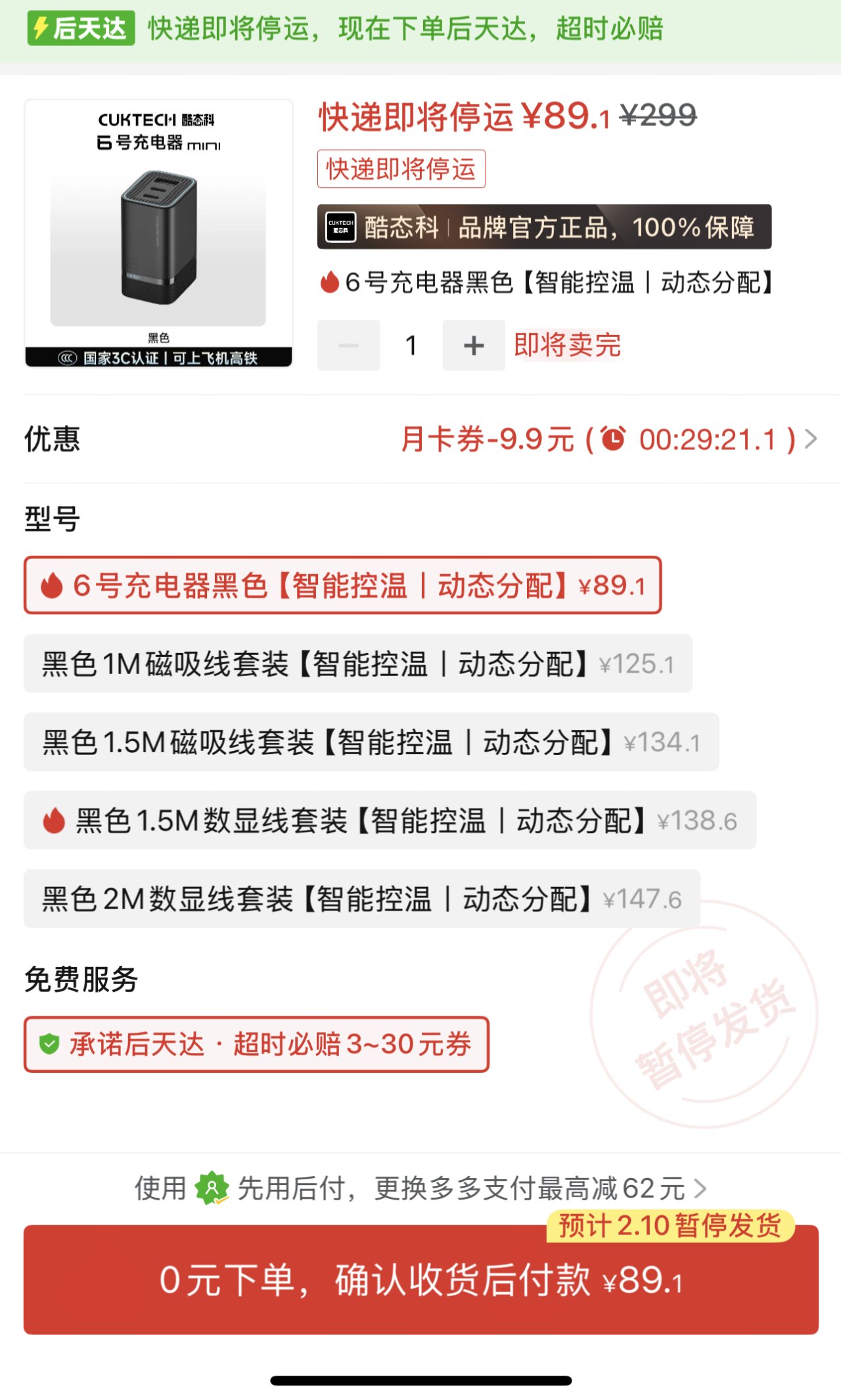 总的来说如果你想要一款拥有很多接口,支持多种协议,且非常小巧适合带出门的充电器,酷态科6号超级电能充MII无疑是一个不错的选择,目前官方售价也只要99元,但pdd我搞下来似乎可以89拿下,真的很香了