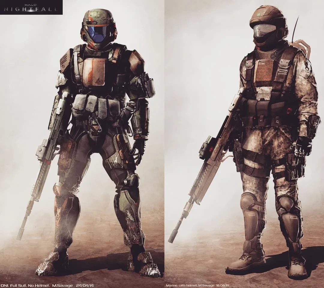 Nightfall armor由級聯堡壘科技研發,是經由地獄傘兵防具特別改裝而來的環境防護裝備,該型護甲現已適配雷神之錘【GEN2】平臺,可供斯巴達戰士使用。
