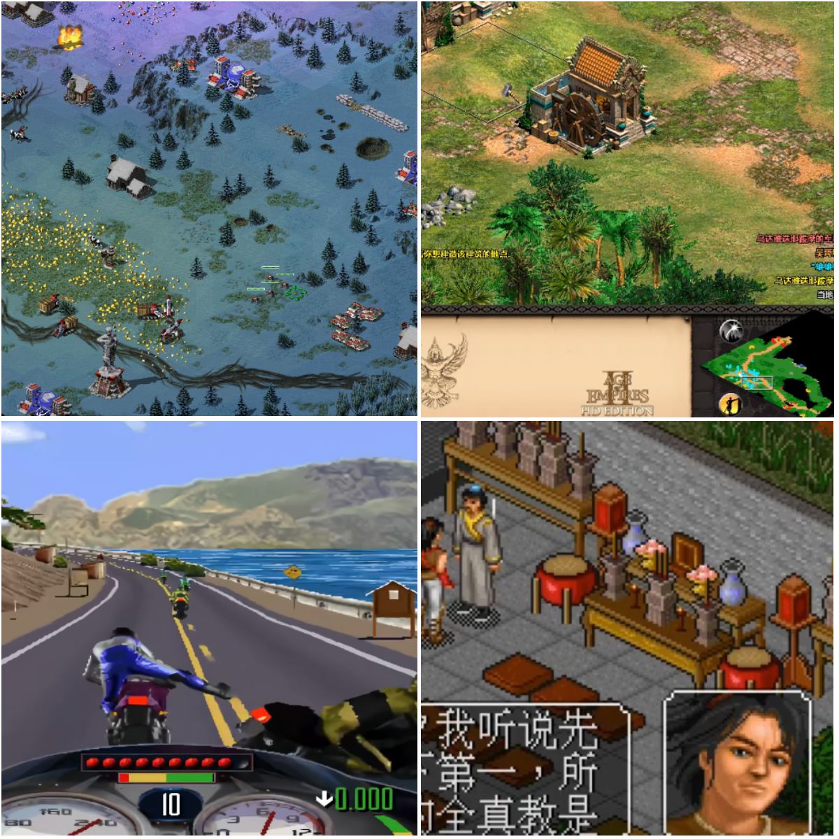早期的时候家里还没办网,我印象比较深刻的就是去老爸单位玩《红警》跟《暴力摩托》,在家就玩《金庸群侠传》《帝国时代》,那会儿金庸在同龄人里面还是很火爆的,画面看着很酷,一堆武侠迷对着游戏里的人物招式喜欢的不得了,再加上那会儿古装武侠剧盛行,以前上学课桌里都塞一两本武侠小说,后来一堆人课间开始讨论金庸群侠传的游戏。
