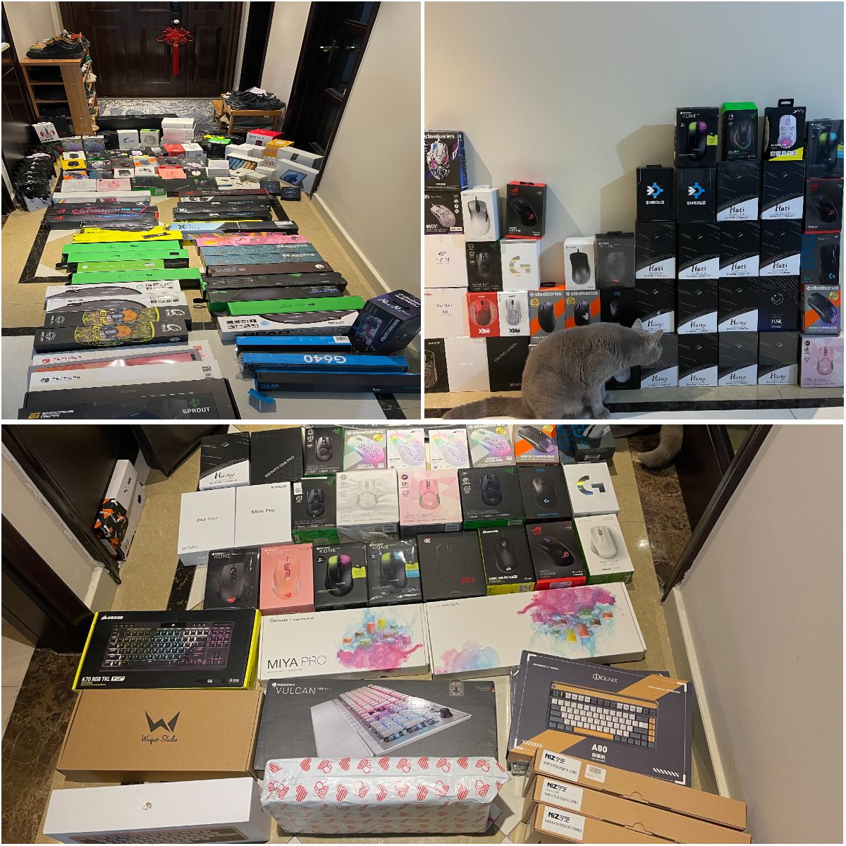 疫情爆发的时候刚好临近搬家,这时期又把我的兴趣从现充拉回到游戏上,当时对《2077》十分期待,刚好电脑也用了很多年了趁着搬新房买了新电脑新外设,乱弄一通之后又对游戏外设跟PC产生兴趣,当时搞得书房各种光污染,又图新鲜感摸遍了所有品牌的鼠标跟垫子,也是在这个时期开始接触外设圈,外设玩了一圈又开始刷装备前线接触客制化。