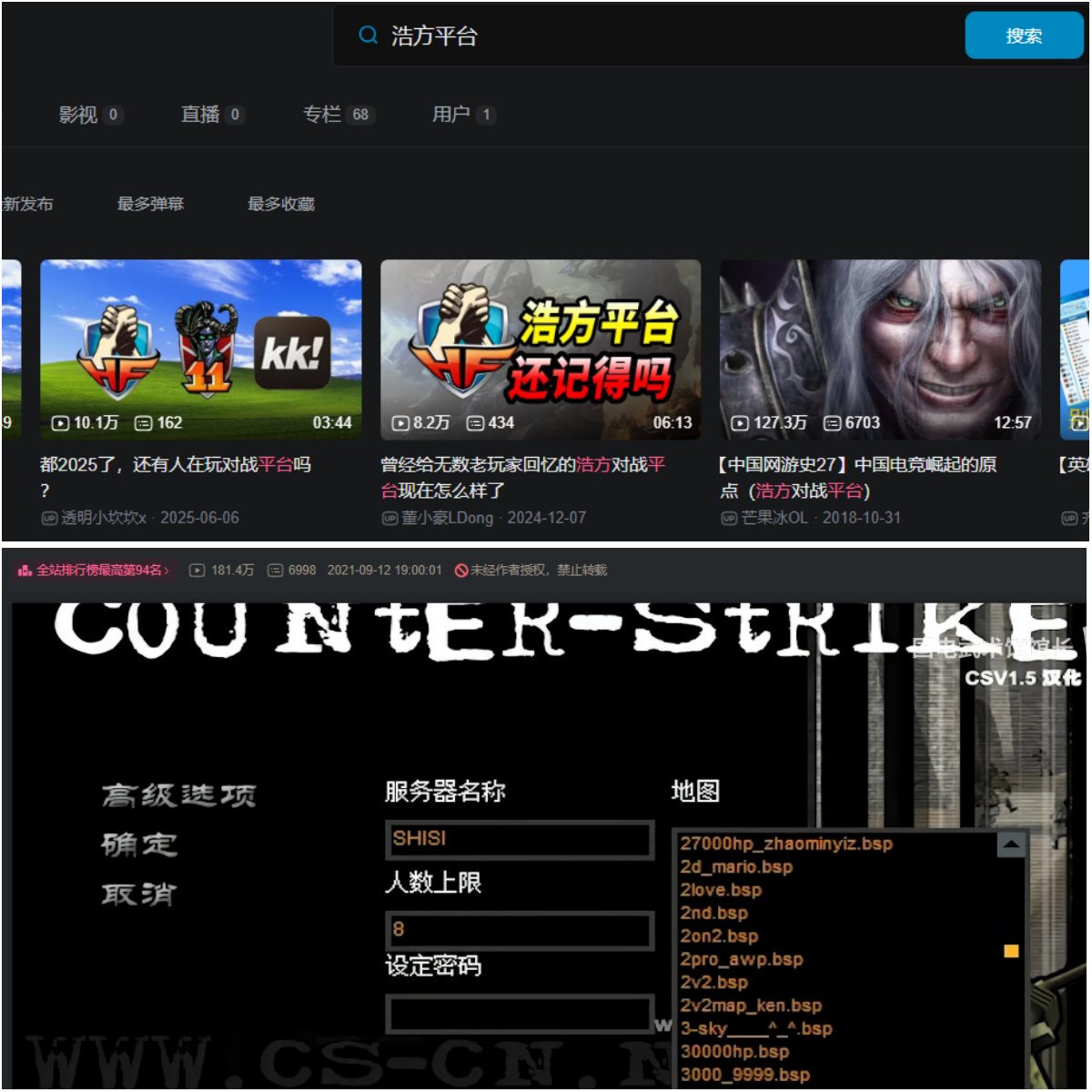 这个时期除了玩网游偶尔还上浩方平台打CS,打War3RPG,印象里浩方应该是最早的网络竞技平台,那会儿班里年级里搞小比赛一堆人还在浩方上对赌个零花钱玩。