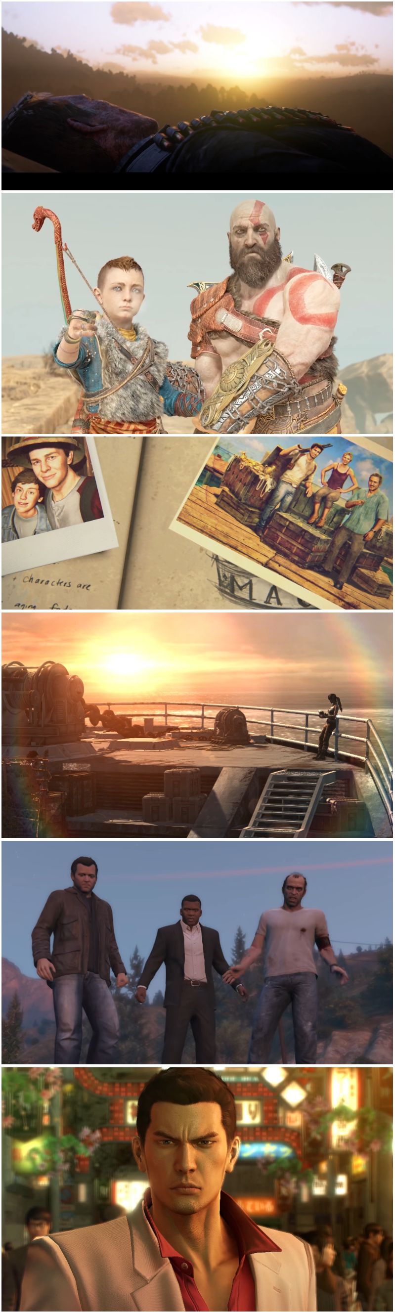 2077通关之后后劲儿太大,再一次把我关注点拉到剧情丰富的大作上,画面不过时的就上手玩玩,画面老一点的就看看视频,陪亚瑟过雪山,看他在生命倒计时开始不断去修正自己的过错,陪奎托斯一路挥砍杀穿奥林匹斯,跟着内森和劳拉一路跑酷一路塌,听着三男一狗互相嘴炮对骂,看着桐生一路背锅到患癌,也看着自己库里生化、刺客、远哭系列越来越多。