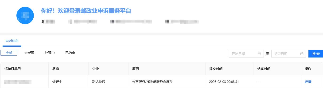 首先来到我们的邮政业申诉服务平台
