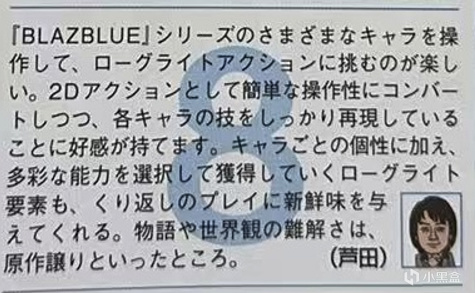 來看一下參與評分的編輯們都是怎麼評價本作的,注意,使用的評測版本是《蒼翼:混沌效應X》,是包含了Arc System Works製作的全新劇情的。(每一張圖下面都附帶了翻譯稿供大家參考。)