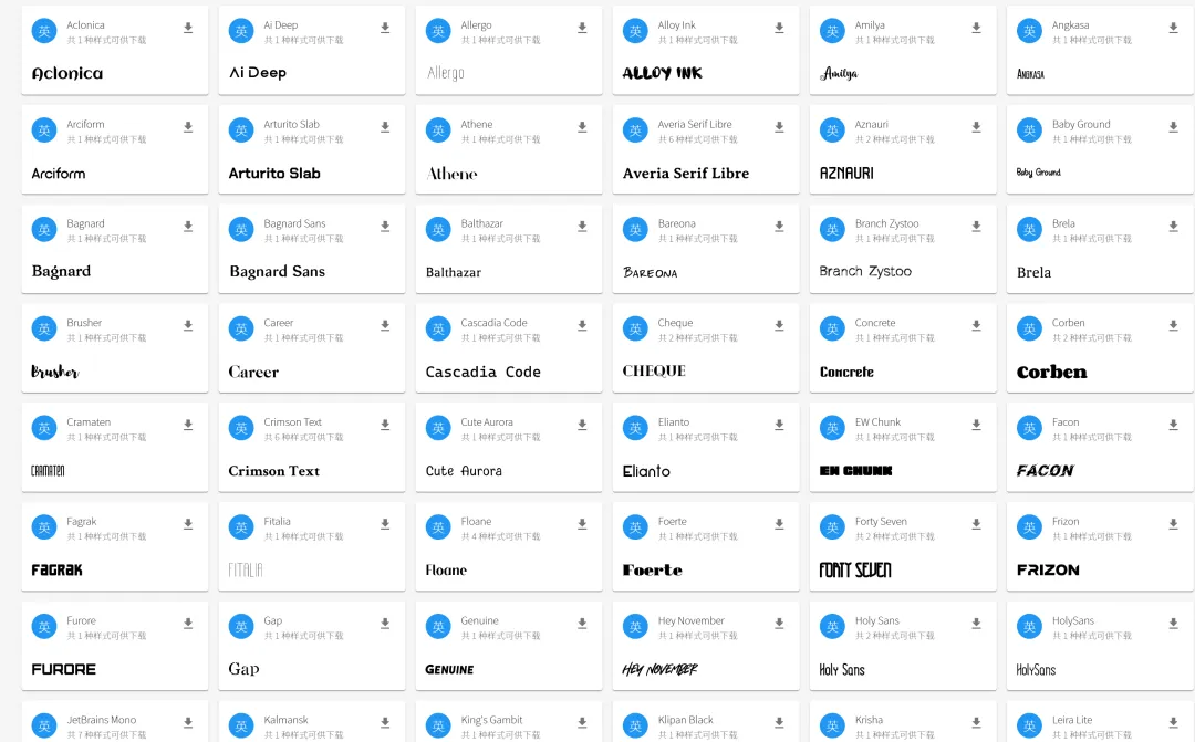海外優質平臺,主打西文字體,風格從復古襯線到現代無襯線全覆蓋,。基於開源協議,可免費商用及二次創作,支持按風格、用途篩選,適合英文海報、網頁設計等國際化場景。