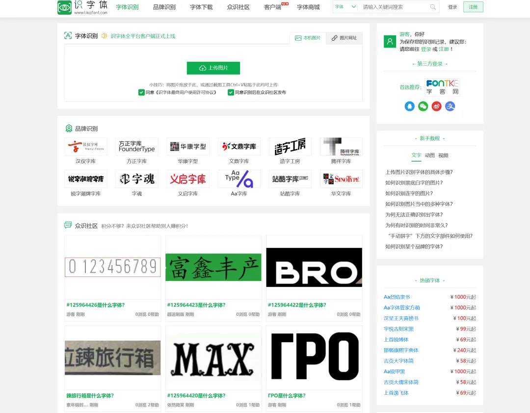 上傳圖片自動識別字體名稱,解決"看到好字體卻不知道是什麼"的痛點。識別後自動顯示該字體的版權信息和商用授權價格,判斷是否可以免費使用或需要購買授權。已收錄數萬款字體樣本,識別準確率高,支持中英文字體識別。