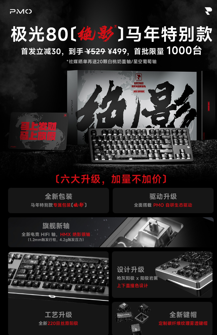 PMO又整新活了!之前他們家的極光80就因爲設計和質感出圈,這回推出的新配色“絕影”,估計又是一把理財產品。