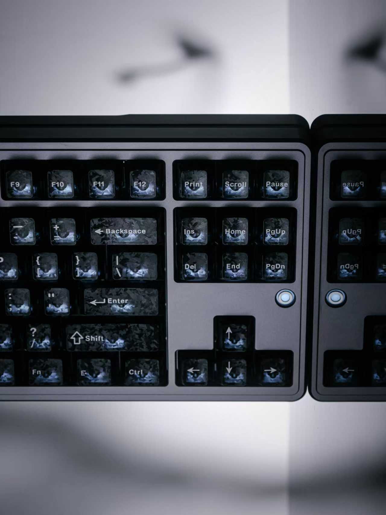 鍵帽:用上了現在很火的 碳纖維紋理鍵帽。說實話,這是我第一次在鋁坨坨上看到這種鍵帽,紋理的立體感和金屬外殼的冷峻感碰撞,效果非常獨特。