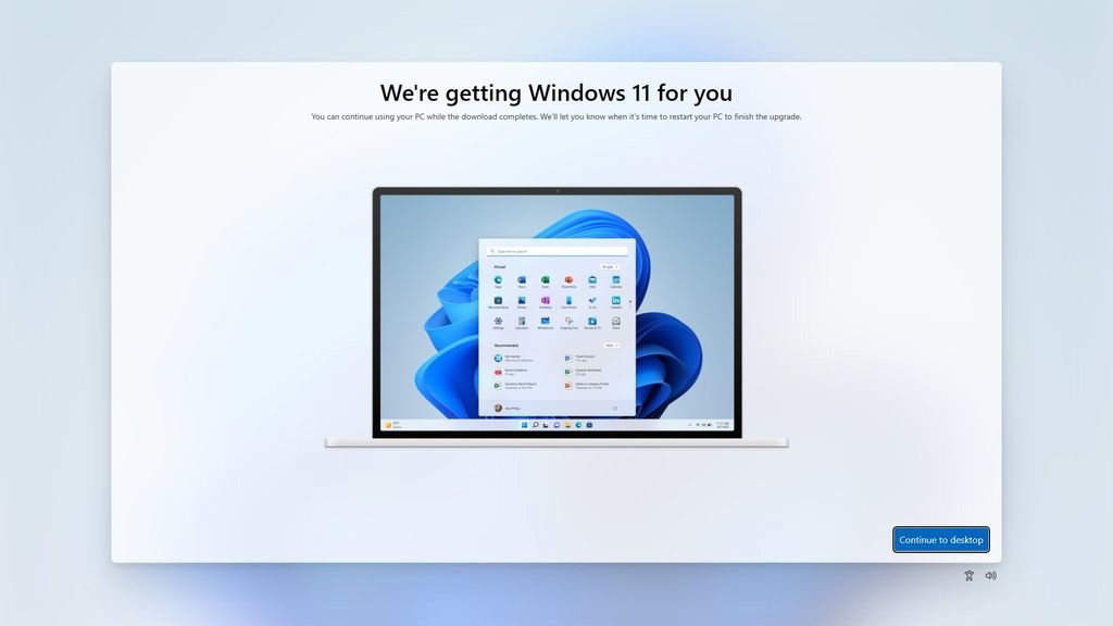 不要担心 —— 系统更新会在后台下载(大约 4GB),过程中你可以继续使用 PC。