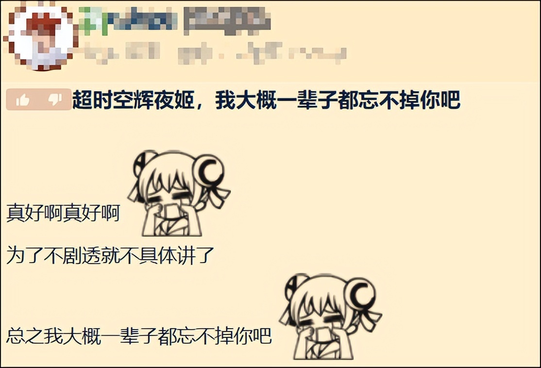 除了這些,如果平常會刷一些ACG相關的論壇,那你大概率已經刷到過《超時空輝夜姬》的安利帖。各式各樣非常多,總結下來不過“好看,愛看”四個字。