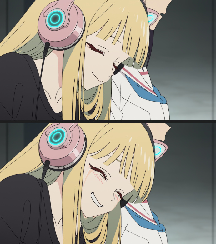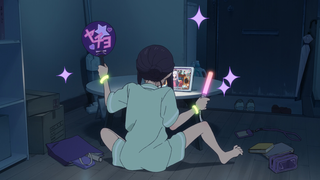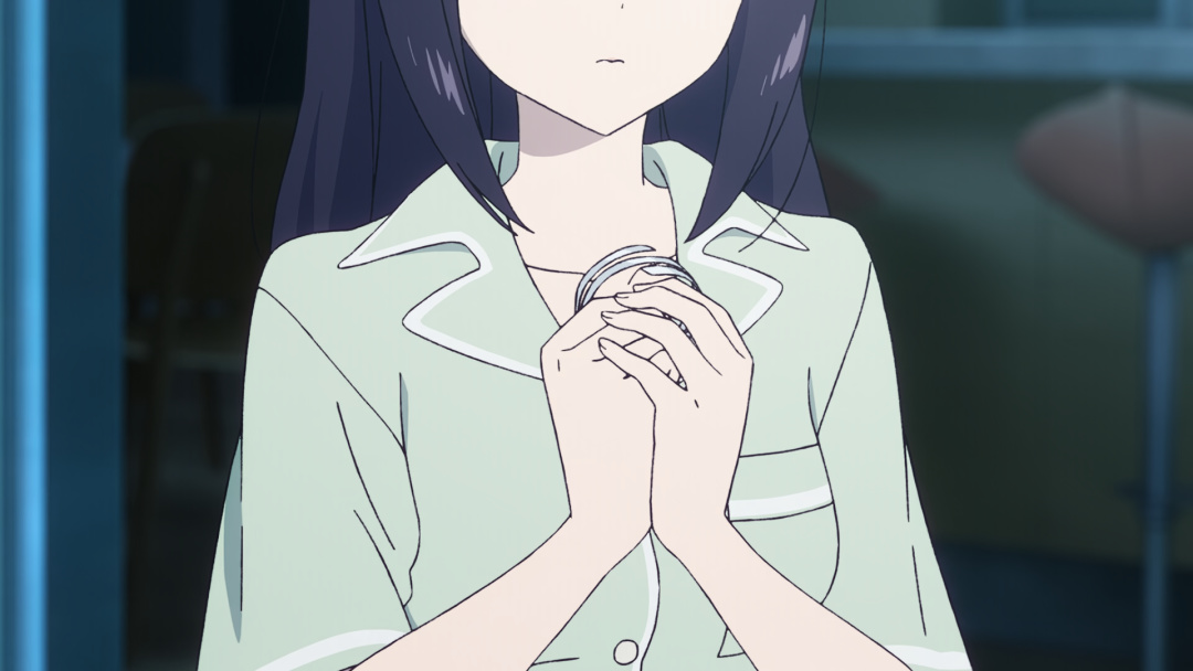 在真正相認之前,八千代始終是自卑的。她害怕因爲自己搞砸了重逢,害怕彩葉知曉那些被時間掩埋的種種,會選擇離開,所以她從未向她袒露心聲。直到彩葉尋着線索,來到她的面前,真正說出想和她在一起。把自己當作電子幽靈的八千代,才終於流下淚水。