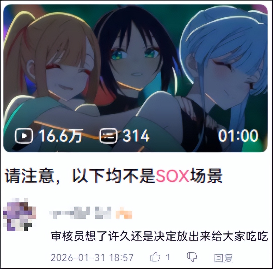 但在開播之後,風向變了,B站上到處都是後勁超大的劇情MAD,還有與SOX相關,未成年禁止入內的百合圓桌。