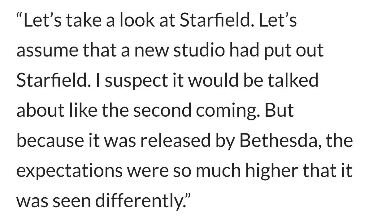他認爲《星空》的口碑滑坡完全是因爲“玩家期待值管理失控”