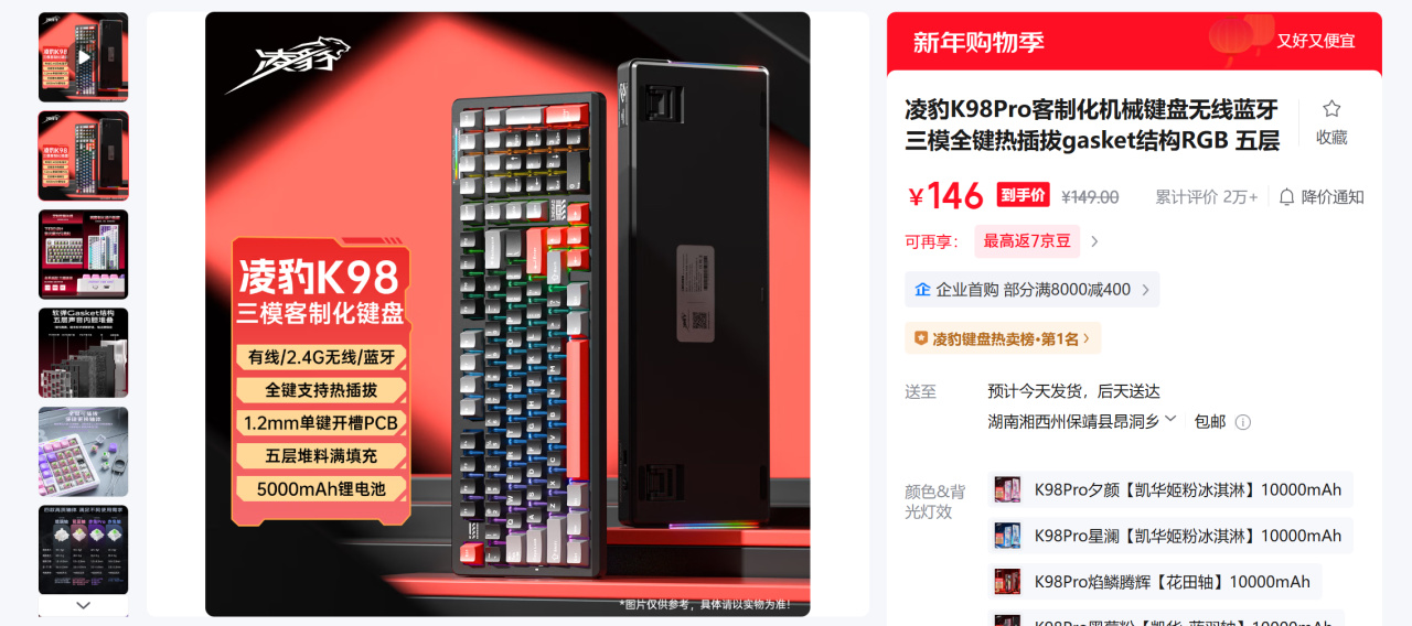 預算在百元出頭,還不到200,但想整一把體驗相對全面的大配列機械鍵盤。雖然現在大夥都在內卷,但能做到這麼極致的不多,凌豹K98算其中一位。