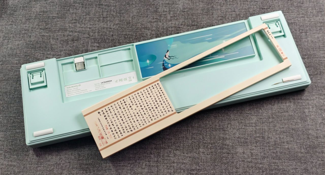 比如鍵帽上印着《洛神賦》相關的文字紋樣,搭配可磁吸替換的琺琅銘牌,還有背面一整塊能拆卸的、刻有洛神賦的蓋板,處處都是細節。