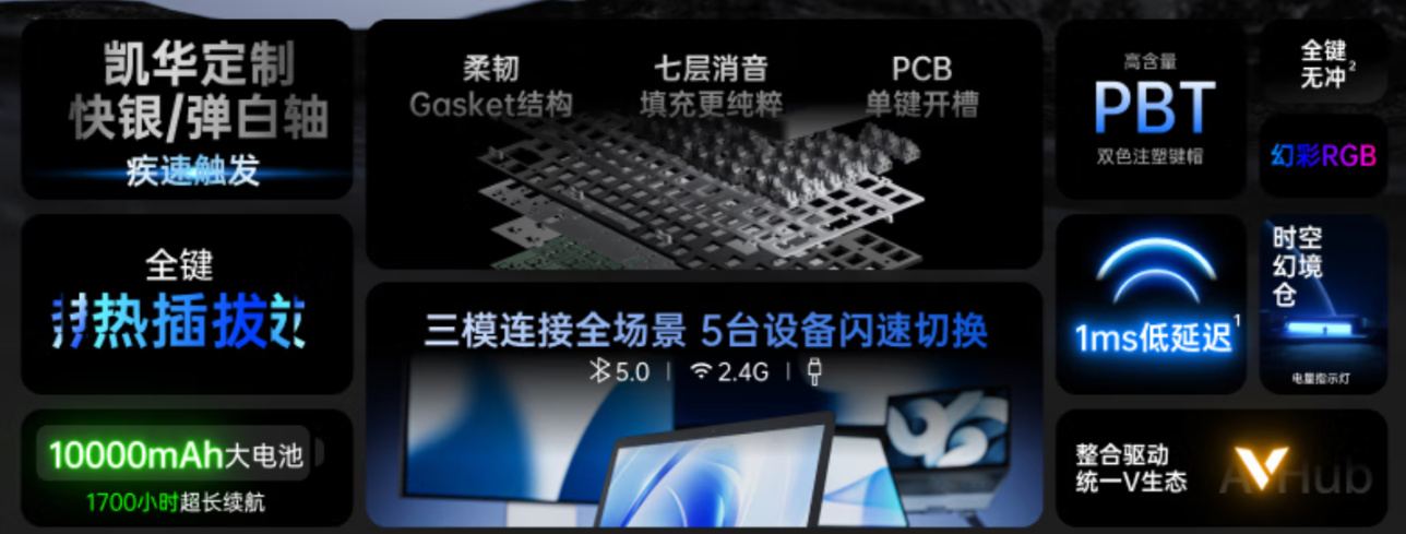 這把鍵盤的SKU特別多,入門版是149元的暗勇者,配的是赤兔軸+5000毫安時電池