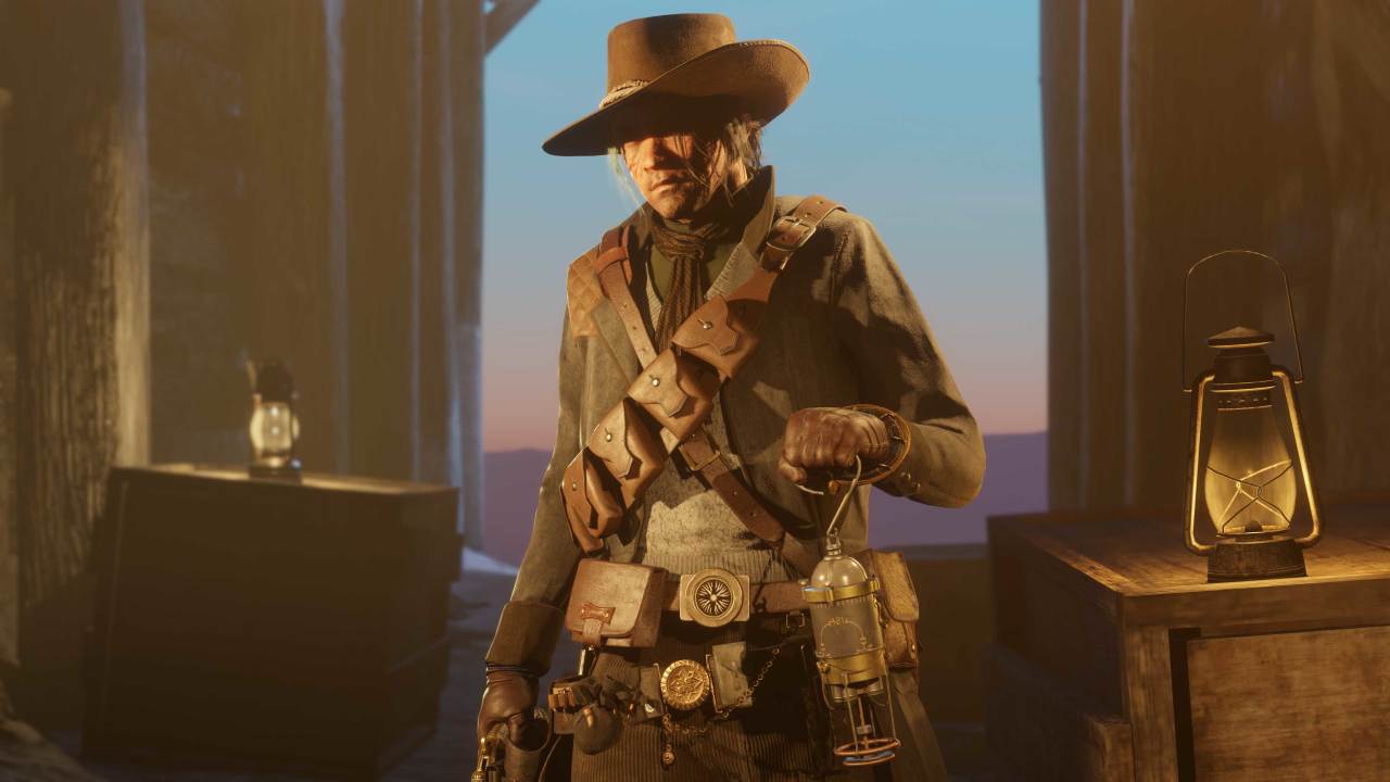 虛擬攝影師兼 r/RedDeadFashion 骨幹成員Thelastoftes專門爲收藏家打造了這套裝扮:足以承受長途旅行造成的磨損,還能抵擋刺眼陽光、防止頸部曬傷。