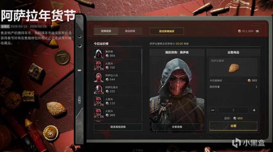 说明:完成每日任务获得阿萨拉糖果,通过售卖糖果获得拜年币。用拜年币来抽奖有机会获得传说或史诗捆绑包外观、乙巳玄武、万金泪冠等大红