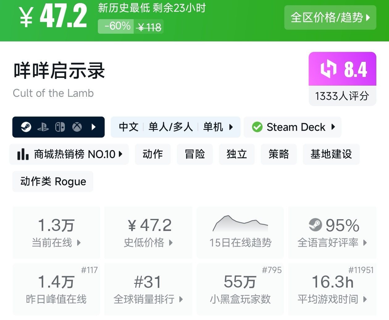 以上就是這期的折扣彙總,幾乎涵蓋了近期所有的新史低遊戲,足足用了我一個小時。