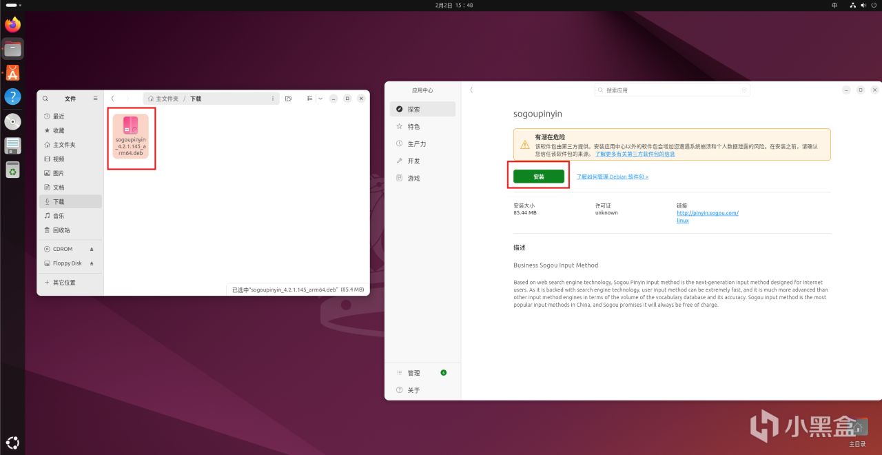 方法 2:deb 安装包:和 Windows 的 exe 文件一样,双击即可安装(适合官网下载的软件)
