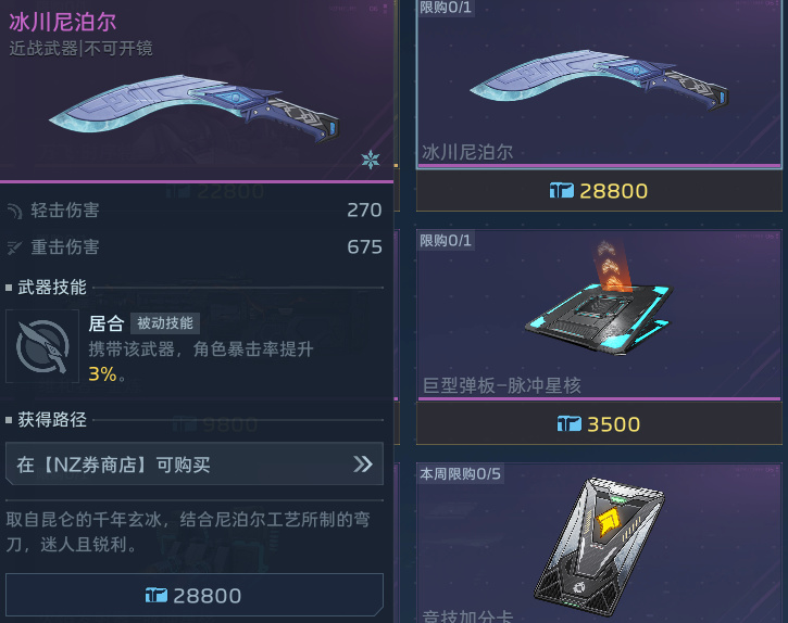 NZ券还是有点用的,因为赛季多了一个冰川尼泊尔,增加3%的暴击率,不过需要3万NZ券才能买。