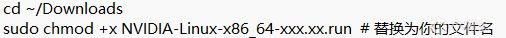 3、赋予.run 包执行权限(切换到下载目录,如~/downloads)