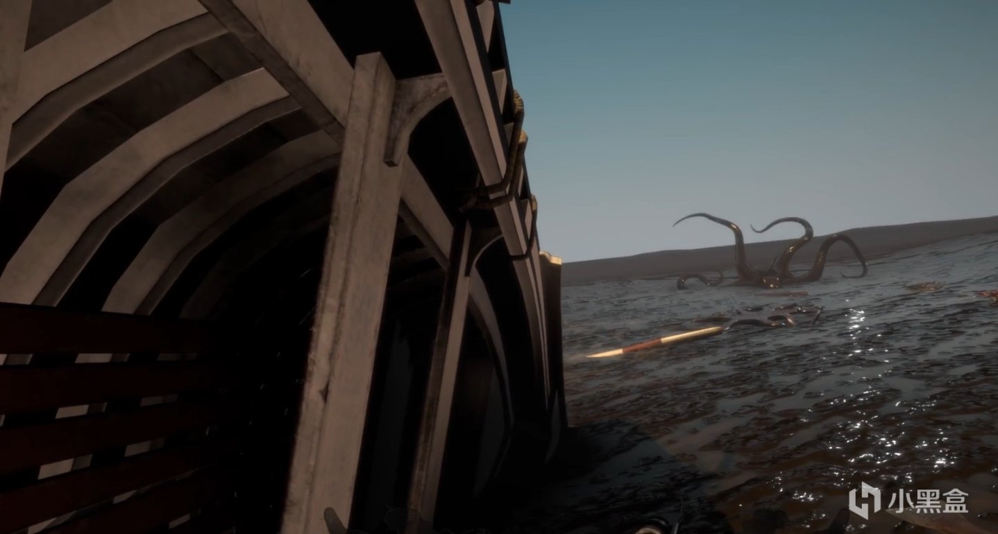 這時我突然看見了它。只有一陣輕微的波瀾標誌着它浮出水面,那生物從幽暗的水面潛入了我的視野。那像是波呂斐摩斯一樣巨大而醜惡的身體如同夢魘怪一般衝向石柱,揮動它那佈滿鱗片的粗壯手臂,同時低下醜陋的頭顱,發出一些有節奏的聲音。我想我那時已經瘋了。