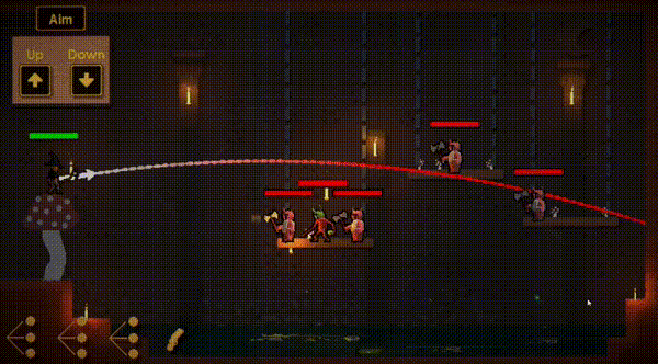 精準的拋物線投擲只是這場狂歡的入門券。遊戲真正的策略深度在於對物理規則和環境的高度利用。你可以將敵人當作彈珠檯上的障礙,讓你的飛彈在其間瘋狂彈射,一石多鳥;可以擊落頭頂的蜂巢,召喚自然盟友進行持續攻擊;更可以觸發場景中的古老機關,改變地形,創造對自己有利的戰局。甚至,你可以用燃燒效果燒穿地板,讓敵人集體墜入深淵。在這個遺蹟裏,每一面牆壁、每一個機關都是你武器庫的延伸,真正的贏家永遠是最擅長“借刀殺人”的環境大師。