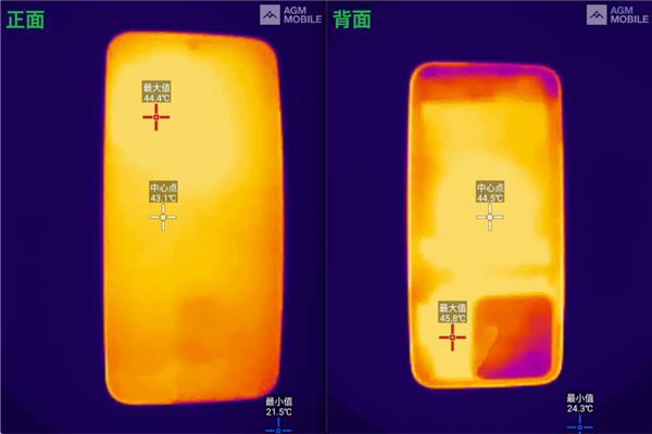 而从机身温度来看,正面最高温 44.4℃,背面最高温 45.8℃,也是从从容容、游刃有余。