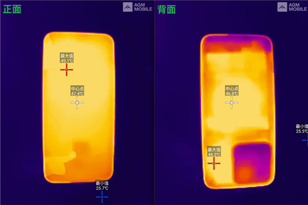 但是机身温度下来了,正面最高温降到了 49.1 ℃,背面最高温只有 48.5 ℃。
