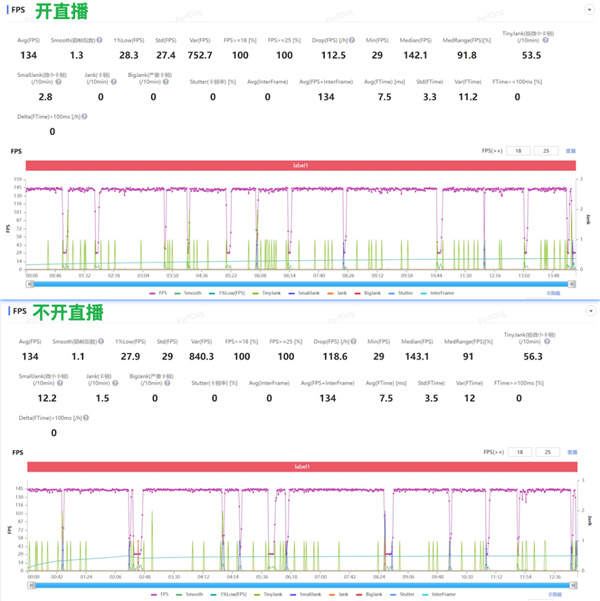 平均帧没变,1% Low 帧的差距小到可以忽略不计。