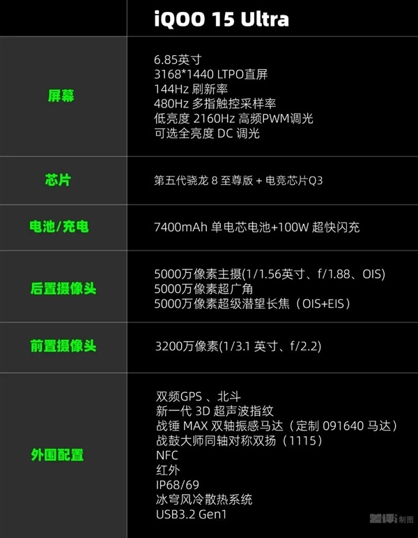 它,就是 iQOO 15 Ultra,一台表面上正经,实际上散热风扇、氛围灯、游戏肩键。。。等等你所有能想到的玩意都被偷偷塞到了机身里的子品牌性能超大杯。