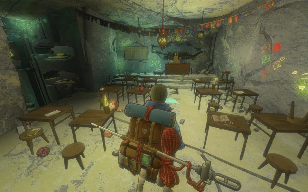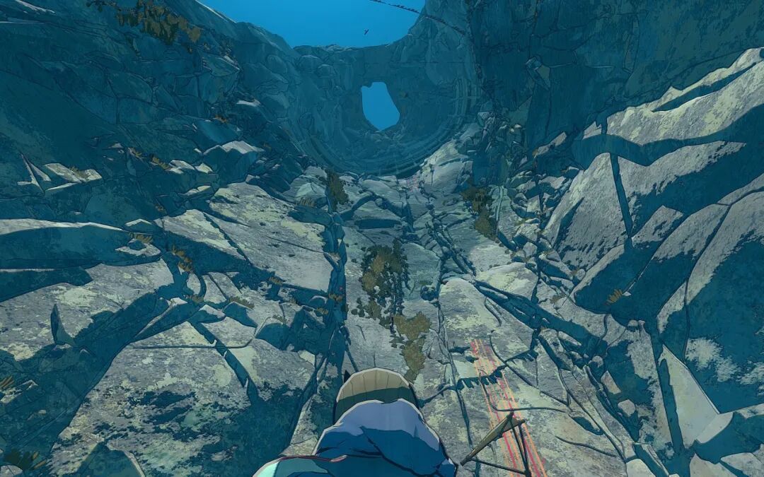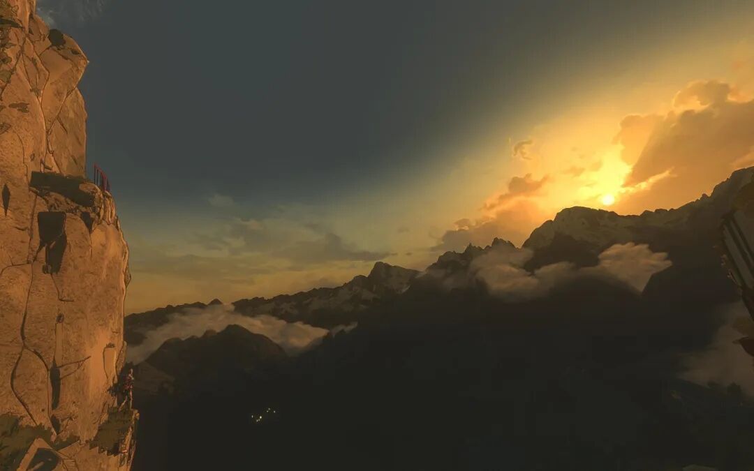 遊戲沒有通過直接的劇情來表達任何價值觀,而是讓攀登過程本身承擔敘事功能。神山並非絕對的無人之境,海拔不高的區域頗受攀登愛好者的青睞。你能找到早年攀登者搭建的避風港和簡陋餐吧的遺蹟,巖洞裏甚至殘留着狂歡節的綵帶與永不消逝的搖滾樂回聲。官方修建的鏽蝕索道支架,指向一個這裏曾作爲觀光地存在的、已模糊的過去。這是山被人類”馴服”或“享用”的邊緣,充滿了練習、交流與煙火氣的痕跡。