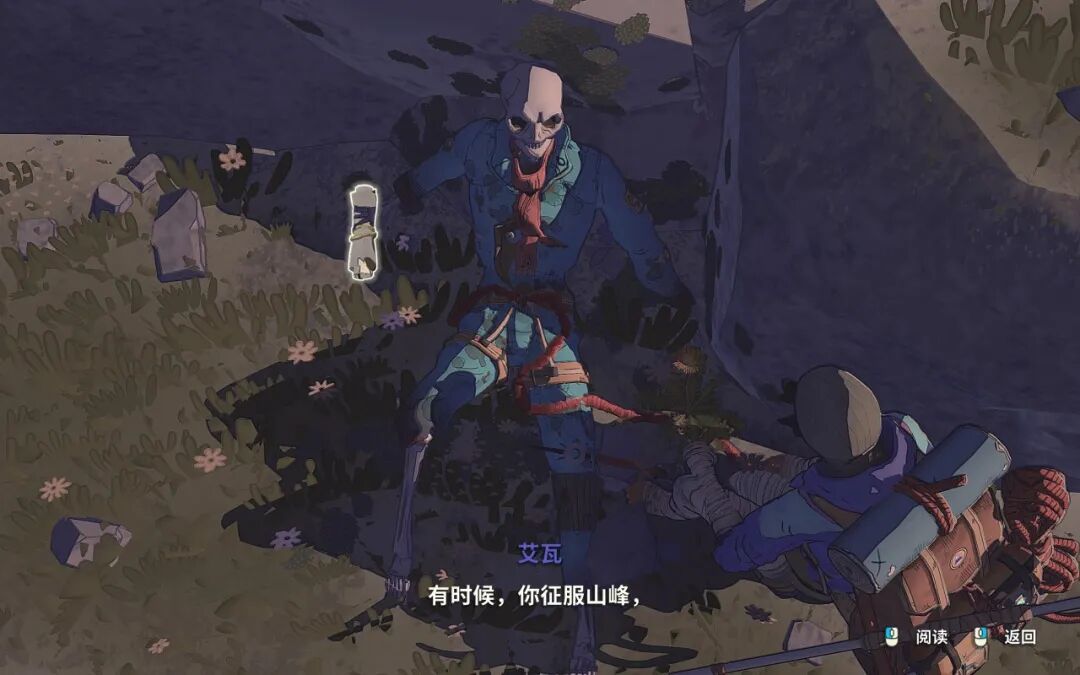 《孤山獨影》的最後,爲你提供了兩個結局。在卡米峯的“刀鋒區域”,你會遇到此前結識的,另一位經驗豐富的登山者馬爾科,他明白神山的危險,也懂得何時該放棄。若選擇和馬爾科一同下山,你迎回的是人間的暖意——篝火、朋友、以及一位始終等待你的愛人。結尾動畫會以溫柔的筆觸素描你們攜手歸途的風景,彷彿爲這場苦旅畫上一個體面的句號。