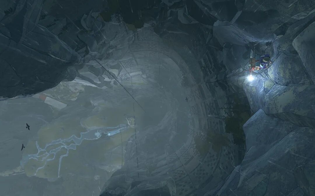 神山也有自己的人類史,大量碎片化的故事被安排在洞穴與遺蹟中。歷史上曾有一羣信仰神山的人在此建立了近乎自足的村落,他們被稱爲“穴居人”。巖壁上開鑿的農田、深入洞穴的養殖池、用於傳授知識與攀登技巧的學校遺址,以及莊嚴的聖所與成年儀考驗場……他們耕種、捕獵、繁衍、崇拜、埋葬,形成了一個圍繞山峯建立的完整文化閉環。