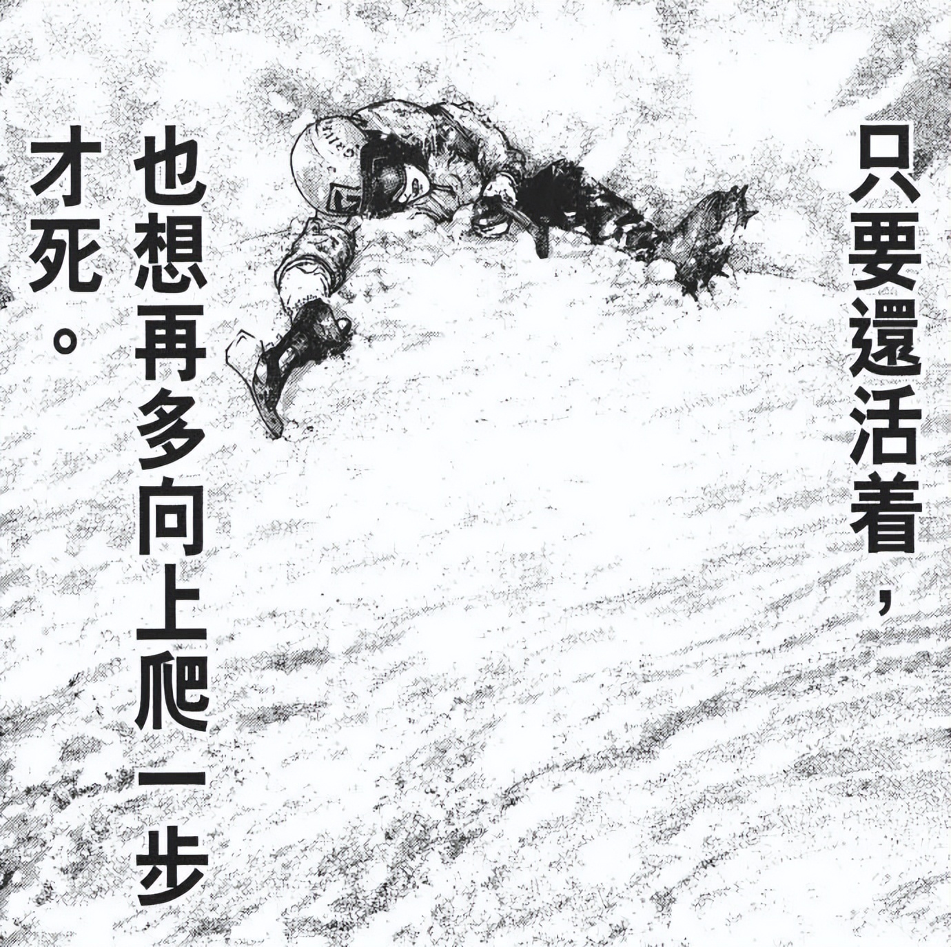 生存的瑣碎與攀登的崇高不得不交織在一起。你悉心照料這具肉體,這具會顫抖疲憊,渴望溫暖的凡軀,以觸碰唯有摒除一切雜念才能窺見的永恆。山不在乎你是否飽足,但你的每一次吞嚥與安眠,都是爲了下一次,能將雙手更穩地交給岩石。