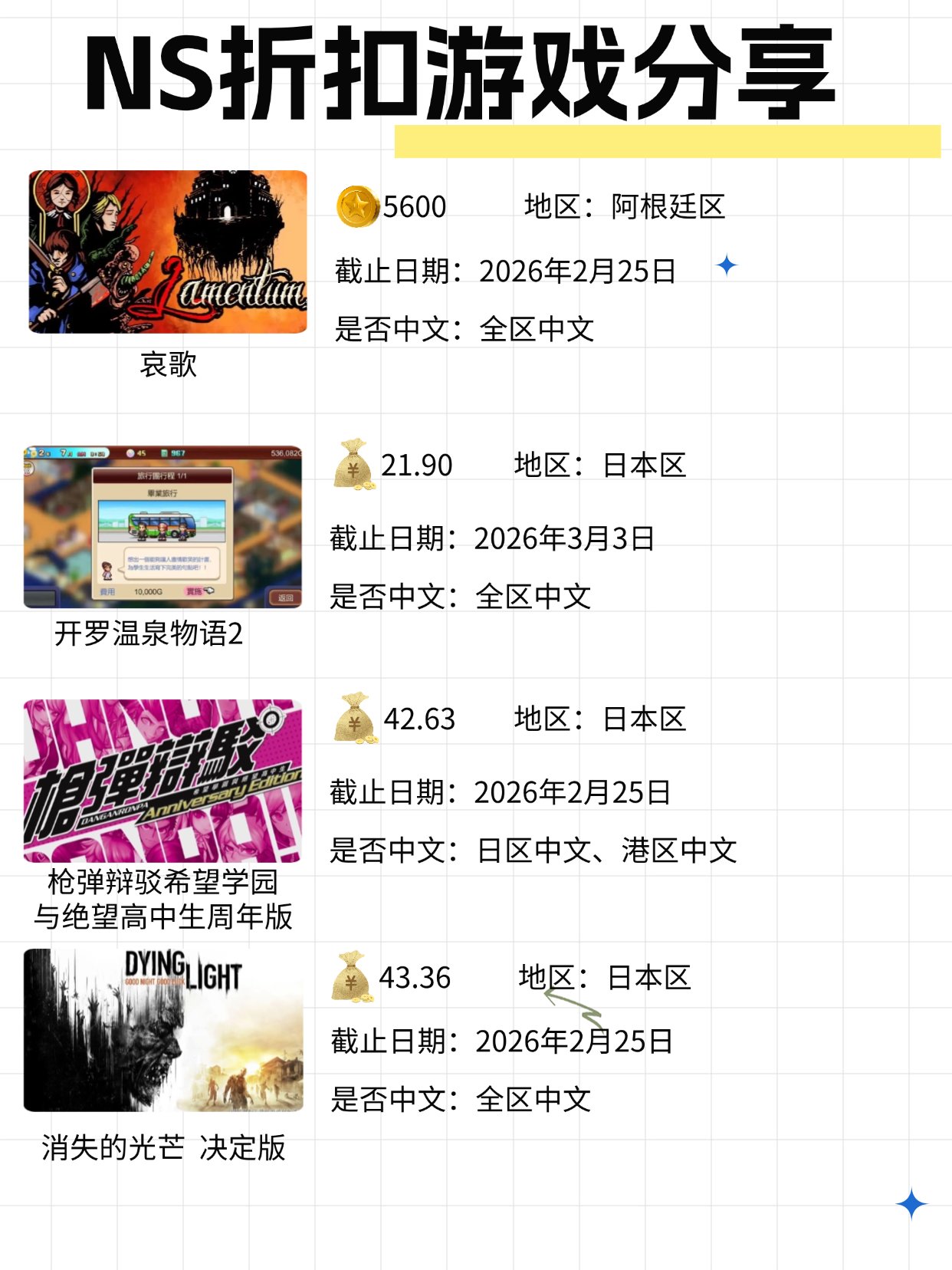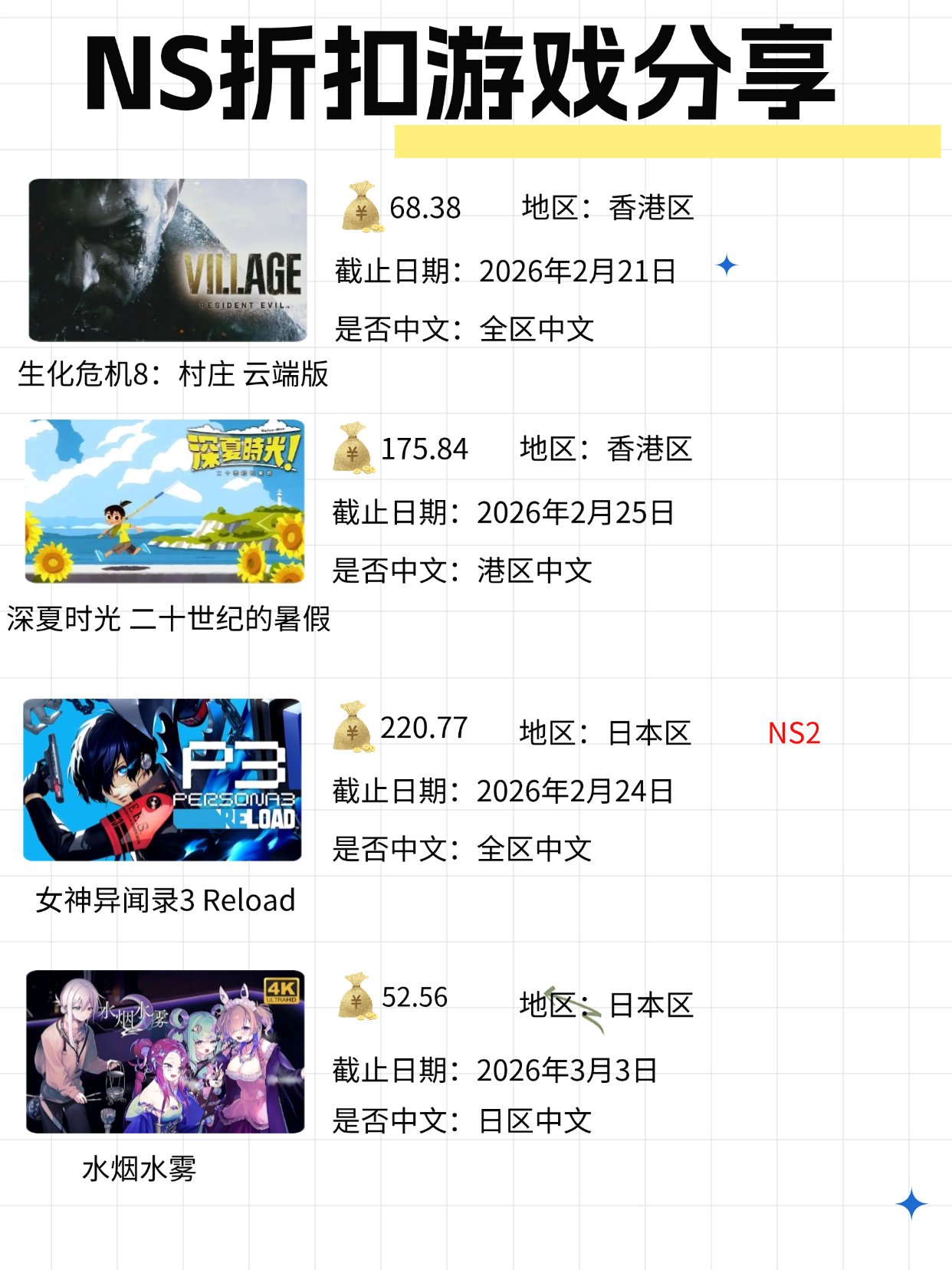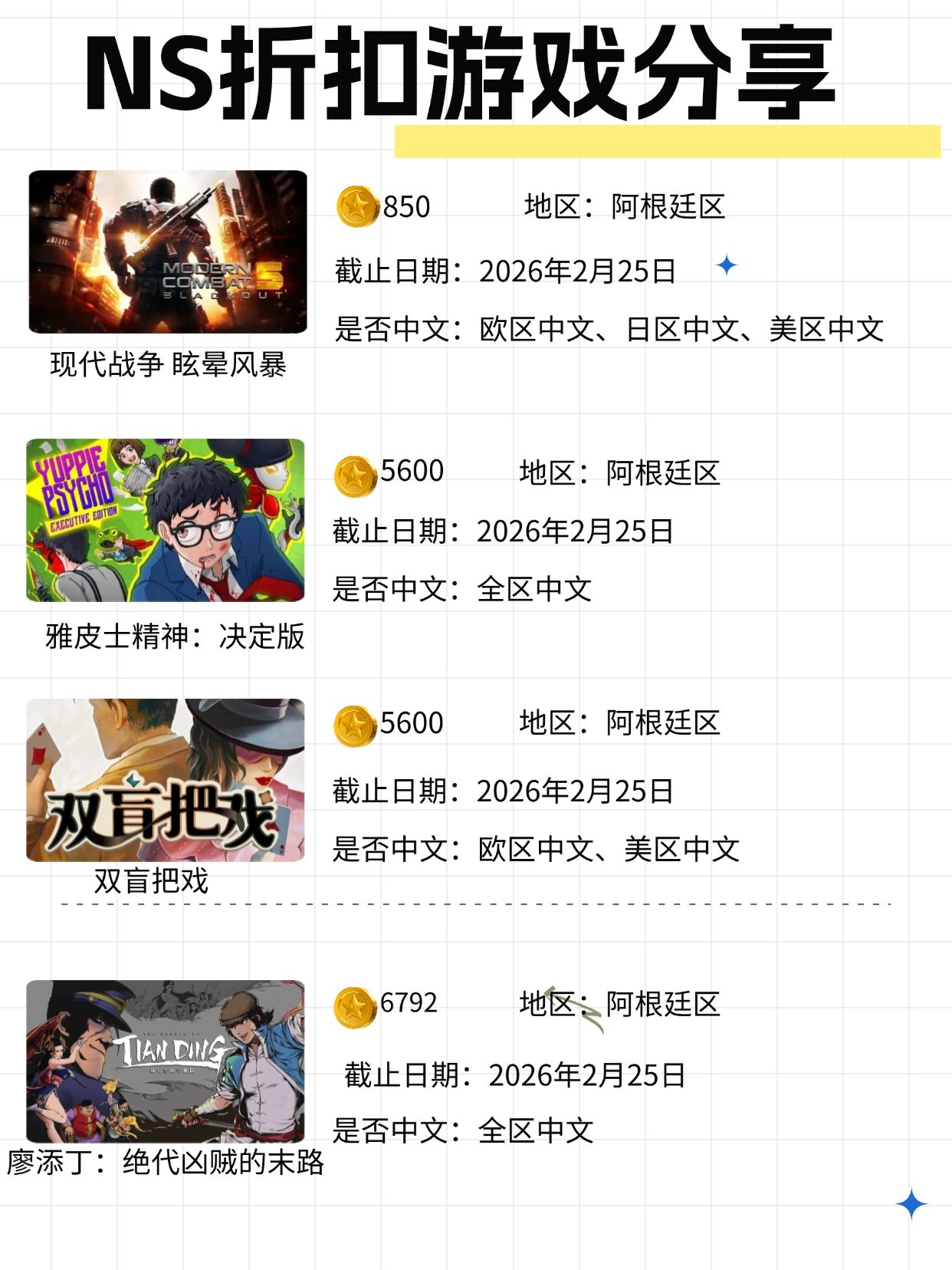本周阿根廷区算是蹦跶了一丢丢,雅皮士精神起码是可以兑换了,眩晕风暴也是850金币即可!NS2中女神异闻录3 Reload好几个版本都在日服有折扣,根据各位玩家的需求来兑换!