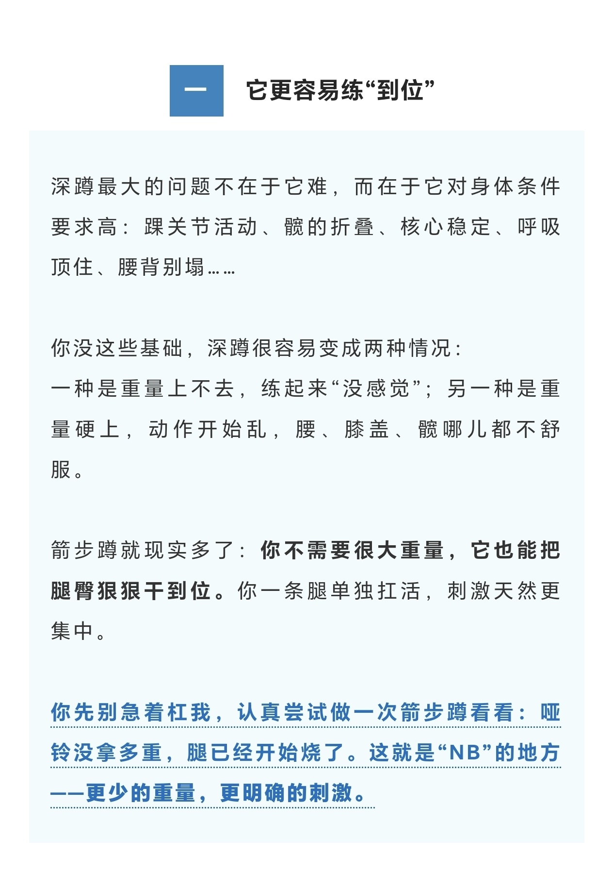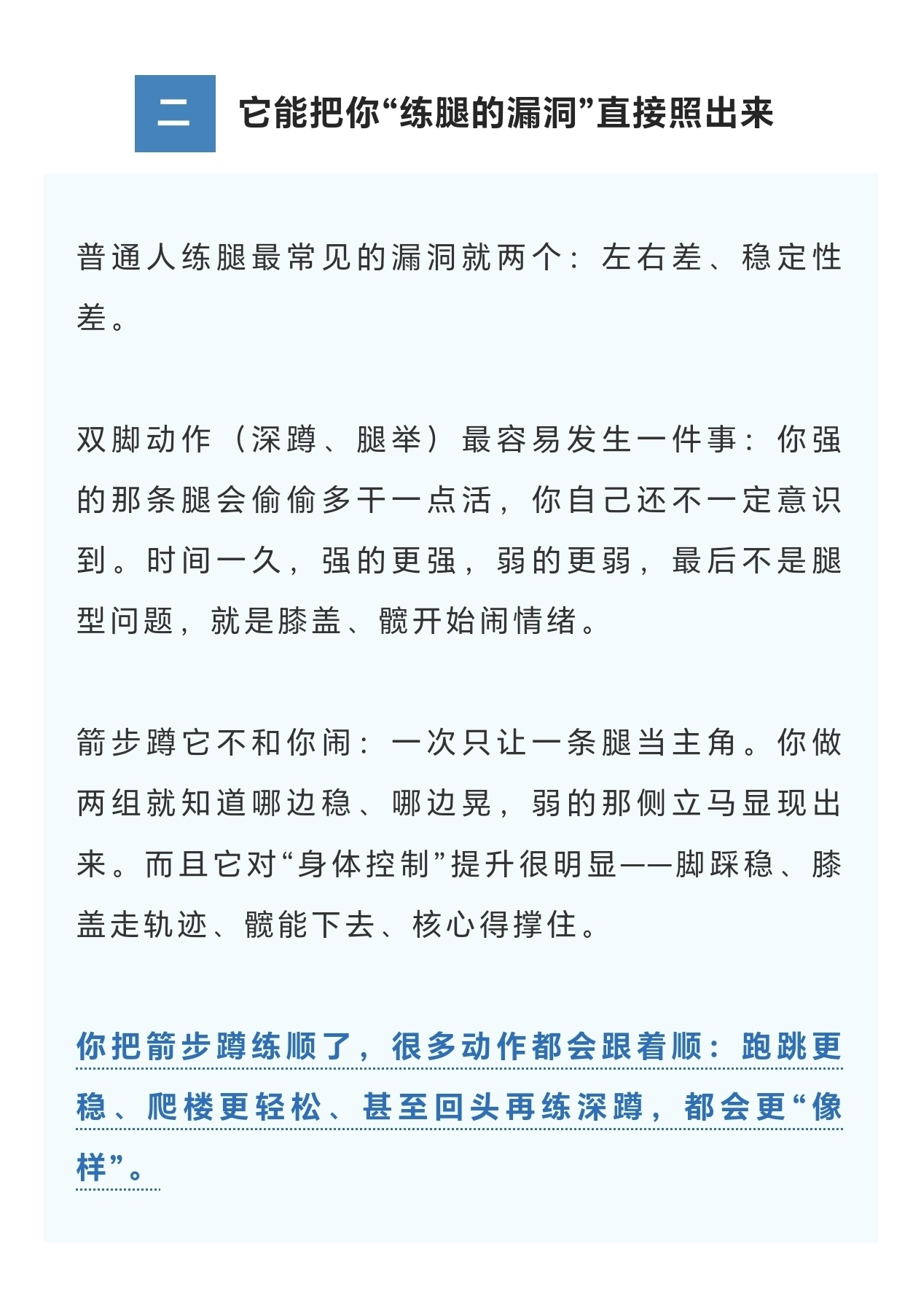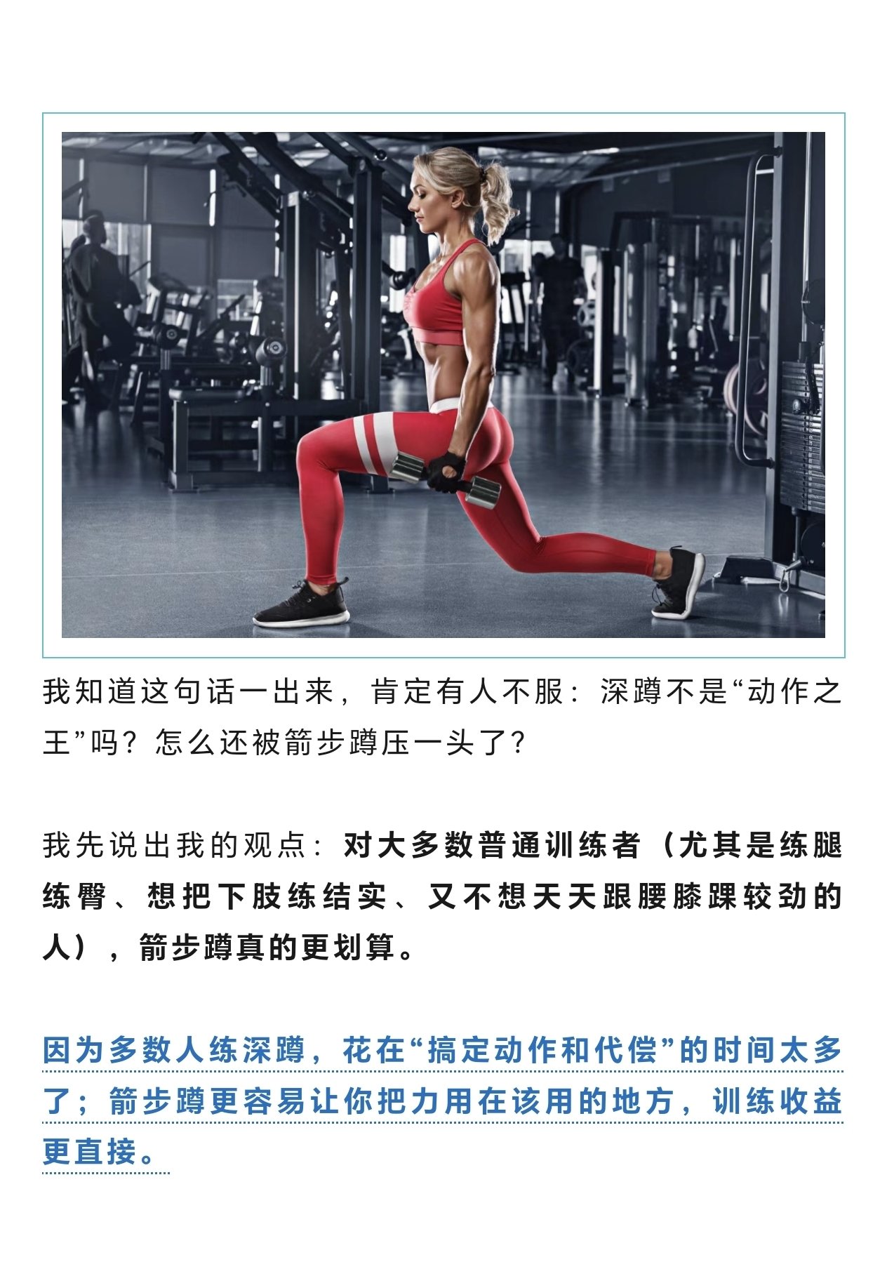 但如果你問我:普通人想用最少的學習成本、最小的受傷概率、換來最直接的腿臀提升——我更願意把主力押在箭步蹲上。