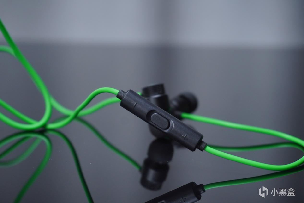 右耳機線材的中間做了一個線控,可以調節音頻的音量,還可以切換曲目和播放暫定。線材是比較結實的TPE線纜,長度爲1.2米,非常直爽,不會纏繞。